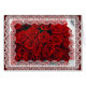 Roses rouges avec dentelle blanche autour, carte parfaite pour toutes les occasions.