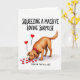 This charming card showcases a sweet moment with a lovable, light brown dog set against a simple white background. The dog is looking down at a scattering of vibrant red heart-shaped petals, adding a touch of romance to the scene. It wears a bright red collar that fits perfectly with the loving theme of the image. In the background, two elegant red heart lollipops add to the loving atmosphere. The white backdrop keeps the focus on the dog and the red elements, creating a warm and cozy feeling.