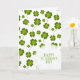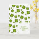 Carte de voeux de St. Patrick avec trèfle à quatre feuilles / shamrocks irlandais sur vert et blanc. Vous pouvez customiser cette carte et modifier la disposition, la couleur arrière - plan ou ajouter un message personnalisé. Des timbres correspondants sont également disponibles.