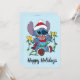 Célébrez Noël avec ce joli graphique de Stitch de Disney tenant des lumières de Noël.