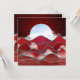 aménagement paysager Abstrait dans différentes nuances de rouge avec une lune, des collines, des arbres, des nuages et des oiseaux.