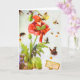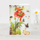 Un adorable lutin niché à l'intérieur d'une grande fleur de coquelicot parmi les abeilles et autres insectes. Image charmante.