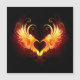 Angel fire heart with flaming wings on black background.