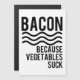 Funny bacon citation carte métal en gras noir : Bacon Parce que les légumes bougent! Bacon est populaire, très populaire. Tout le monde adore le lard. Mangez des bandes de bacon, des bandes de bacon et d'autres bandes de bacon. Tous vos problèmes disparaîtront pour toujours quand vous aimez le lard et ignorez les légumes.