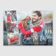 Script De Brosse Moderne Enregistrer La Date Fiançailles Couple 4 Photo Magnet Card - Script Blanc