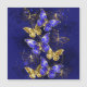 Composition des luxueux papillons saphir et bijoux en or sur arrière - plan bleu texturé.