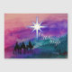 Belle scène aquarelle avec la silhouette des Trois Rois en route vers le nouveau-né Jésus. Carte religieuse de Noël proclamant la naissance du Christ.