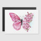 Flower arrangement of pink butterfly with rose Japanese cherry blossoms on white background.