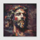 Cette carte est ornée de l'image de Jésus Christ. Elle est représentée par les géométries géométriques et des couleurs vives, avec des parties du corps décomposées et représentées sous différents angles. Cela crée une impression de mouvement et de recul, tout en ayant une touche artistique unique.