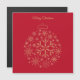 Carte magnétique Joyeux Noël. Design élégant d'une boule de Noël dorée faite de flocons de neige avec une inscription sur un arrière - plan rouge. Elégant, concis, inoubliable.