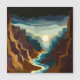 Un beau paysage d'un canyon avec une rivière aux tonalités audacieuses de brun, tan, bleu, cyan, or et beige.