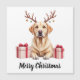 Cette belle illustration présente un portrait détaillé d'un Labrador Retriever jaune affectueux avec sa tête large caractéristique, son expression douce et son pelage doré lisse. Le chien est doté d'une touche de vacances charmante avec des bois de renne ornés de petits ornements dorés et verts/bleus. Deux cadeaux de Noël magnifiquement emballés avec des rubans rouges sont placés bien en vue de chaque côté. Ce graphique de haute qualité est idéal pour les cadeaux de vacances personnalisés pour les propriétaires de Lab, les cartes de Noël, les vêtements, les ornements ou tout produit célébrant cette race de chien amicale et dévouée.