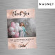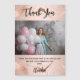 Couleur arrière - plan rose dorée, décorée de veines en marbre doré rose. Script écrit à grande main avec des swashes et le texte : Merci. Personnalisez et ajoutez votre photo, merci note et nom.