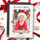 Cadre ruban rouge, joli, audacieux et festif, décoré d'arcs et de fleurs de Noël avec un seul modèle photo portrait, "Holiday Cheer" texte graphique en police décorative personnalisée et champs de texte modifiables. L'arrière comporte un modèle photo de carré de ruban rouge supplémentaire et des champs de texte.