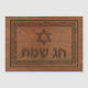 Convient pour Chanukkah ou d'autres fêtes juives. Comprend une "vieille sculpture sur bois" générée par ordinateur par un Magen David (Étoile de David), un texte lisant "Chag Sameach" et une bordure florale.