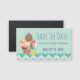 Magnétique Enregistrer la carte Date. Illustré avec un bol de crème glacée avec 3 succulentes boules couvertes de bonbons saupoudrés. Un cône glacé également avec 3 boulettes de chocolat, vanille et fraise. Un bol de desserts rempli de crème glacée au goût néopolite avec une délicieuse cerise sur le dessus. Un motif de chevron bleu le long du bord inférieur.