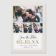 Enregistrez la date avec une carte magnétique chic et élégante avec espace pour 4 photos fiançailles, les noms de mariée et mariée, la date du mariage ou tout autre texte personnalisé. Utilisez les outils de conception pour modifier les polices de texte et les couleurs, ajouter plus de photos et créer un unique d'une sorte enregistrer l'aimant de date!
