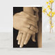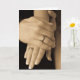 Photo de sépia des mains de nouveaux mariés avec des anneaux. La carte indique des "félicitations" sur l'intérieur.