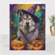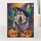 Carte Malamute d'Alaska Sorcière d'Halloween et Citroui