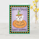 Envoyez des salutations d'Halloween avec cette carte d'un mignon chiot maltais dans un Jack-o-Lantern souriant. Idéal pour les enfants de tous âges qui aiment le maltais et Halloween. Faites une Happy HOWL-oween !