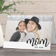 Carte personnalisée de fête des mères Simple Mom. Célébrez la maternité avec ce design minimaliste qui présente le mot « mom » en minuscules avec une police à empattement pour un aspect chaleureux et ludique. Une bande blanche longe le bas, où le texte se chevauche entre le blanc et la photo pour un effet moderne et épuré. À l'intérieur, il y a une douce note imprimée pour la fête des mères, que vous pouvez conserver ou retirer si vous préférez écrire votre propre message à la main. Vous pouvez également ajouter une mention « année de fondation » personnalisée pour rendre la carte spéciale pour une future maman, une nouvelle mère ou pour célébrer maman à tout moment. Simple et intemporel, cette carte est un moyen sincère d'honorer maman avec style.