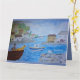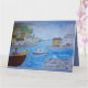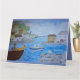 Quirky Harbour avec un homme et un chien heureux sur un bateau, une mouette et des bâtiments colorés. Ajoutez du texte à n'importe quelle zone/côté de la carte. Entièrement personnalisable.