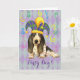 Petit chiot Basset Hound, vêtu d'un casquette festif, prêt à s'amuser sur Mardi Gras ou à tout autre moment. Un cadeau idéal pour vous-même et votre famille et amis amoureux de Basset.