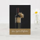 Souhaitez un très bon anniversaire à votre Mari avec cette carte spéciale et élégante. Une bouteille de vin noir est rétro-éclairée, en contre-bas d'un arrière - plan noir. Un arc de couleur or et étiquette disant Meilleur Mari et sous lui, Aged to Perfection.