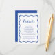La carte Mariage Blue Frame est un charmant mélange de fantaisie vintage et d'élégance moderne, parfait pour les couples à la recherche d'un ajout unique et mémorable à leur papeterie mariage. Cette carte de boîtier présente une palette de couleurs bleu roi époustouflante, évoquant un sentiment de sophistication royale qui complète toute célébration mariage. Au coeur de la carte d'enceinte se trouve un cadre à ruban dessiné à la main, qui sert de point central de la conception. Ce détail fantaisiste mais élégant ajoute une touche de romantisme et d'amusement à la carte, capturant la joie et l'excitation de l'occasion. Le cadre de ruban enferme les détails mariages, attirant l'attention sur les informations essentielles avec un style de coquette décontracté. La typographie utilisée dans la carte de boîtier est soigneusement sélectionnée pour compléter l'esthétique globale. Une élégante typographie moderne est associée à un script tendance, créant un équilibre harmonieux entre les styles classique et contemporain. Cette combinaison de polices ajoute un intérêt visuel et une profondeur à la conception, tout en assurant que les détails mariages sont transmis clairement et magnifiquement. Des éléments subtils vintages et rétro sont intégrés au design, ajoutant un sentiment de nostalgie et de charme. Du ruban dessiné à la main au script fantaisiste, chaque détail de la carte de boîtier dégage un charme intemporel à la fois élégant et unique. L'utilisation du bleu royal comme couleur primaire renforce le sens de l'élégance royale de la carte d'enceinte, tout en ajoutant une touche moderne à l'esthétique globale. La teinte riche dégage un sentiment de luxe et de sophistication, ce qui en fait un choix idéal pour les couples qui veulent faire une déclaration avec leur papeterie mariage. Cette carte Mariage à cadre bleu conviendra parfaitement aux couples qui recherchent un mélange de charme vintage et de sophistication moderne. Son design unique, ses détails fantaisistes et sa typographie élégante en font un choix exceptionnel pour un mariage qui valorise la créativité, le style et le romantisme.