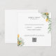 Carte de réponse RSVP de mariage blanc. Code QR. Fleurs de soleil et feuillage.