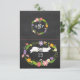 Une suite de faire-part de mariage boho avec une couronne de fleurs blanches composée d'une flore boisée colorée. L'arrière - plan du tableau de bord donne à ce design une ambiance décontractée qui est parfaite pour les mariages extérieurs.