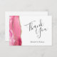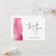 Cette élégante carte de remerciements moderne à mariage plat est dotée d'une bordure en aquarelle rose ornée d'une parties scintillant en faux or. Le texte personnalisable combine les mots "Merci" dans le script d'écriture manuscrite gris charbon et les noms de la mariée et du marié en caractères italiques sur un arrière - plan blanc. Ajoutez votre propre message personnel à l'envers.