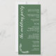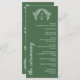 Élégant programme de mariage 9x4 en vert fougère avec un monogramme en forme d'arc en forme de laurier et de belles polices en blanc. Fern programme de mariage vert avec un monogramme de verdure, les branches en forme d'arc, et de belles polices. Programme de mariage plat en vert avec un élégant monogramme en blanc et belles polices et détails de verdure en blanc contre un arrière - plan vert.