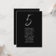 Cette carte moderne personnalisée de numéro de table de mariage comprend le numéro de table en calligraphie de script en lettres blanches et le nom de vos invités assis à cette table. Conçu par Susan Cioffey.