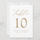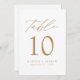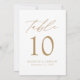 Trendy, minimalist wedding table number cards featuring gold modern lettering with "Table" dans calligraphy script moderne. The design feh white background or a color of your choice. Le design repeats on the back. To order the table cards: add your name, wedding date, and table number. Add each number to your cart individually and check out when you're finished.