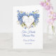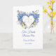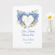 Cette carte mariage est présentée avec une image de coeur d'hydrangées bleues. Le texte dit : "Deux Coeurs Deviennent Un". Les noms personnalisés et la date du mariage à l'avant, modifiez l'exemple de texte sur le vôtre avec ce modèle. Customisez cet article et changez les noms des exemples dans le vôtre. Image sous licence