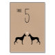 Noir Ibizan Hound marié et marié silhouettes avec coeur. Une carte de table de mariage en papier kraft pour les amoureux d'Ibiza. Chaque carte doit être numérotée et ajoutée au panier séparément. Visitez Jenn's Doodle World pour encore plus de cartes de table pour chiens de races et de produits de planification mariages à thème Ibizan Hound.