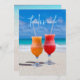 Plage tropicale merci cartes de couple. Des cocktails givrés et fruités sont servis sur une plage de sable ensoleillé, devant des cartes plates à double face. Customiser le texte au besoin. Exemple de texte est "Merci beaucoup" en blanc, police manuscrite le long du haut. Au verso, ajoutez un message et une signature sur un autre arrière - plan de plage. Utilisation pour les mariages, les cadeaux de douche pour couple ou toute occasion.
