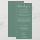 Une élégante fête mariage verte eucalyptus merci carte de réception. Personnalisé avec votre message de remerciement spécial dans la typographie stylisée. Un gardien spécial vous remercie à vos invités. Conçu par Thisisnotme©