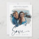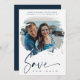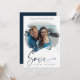 Navy Blue Modern Brushstroke Effect Photo Engaged Couple for Wedding Enregistrer la date. N'hésitez pas à changer la couleur de l'arrière - plan en bas pour vous coordonner avec la photo choisie pour l'avant. AVIS IMPORTANT : Ce design fait partie d'une collection et contient d'autres éléments coordonnés que vous pouvez trouver dans mon magasin. Parfois, il peut être difficile d'aesthealign et des textes ou initiales sur les dessins, si oui dites-moi et je le ferai pour vous. Customisez le design à votre goût et si vous ne trouvez pas ce que vous cherchez ou avez besoin d'une quelconque modification, contactez-moi à hello@themonogramfactory.com et je le ferai pour vous.