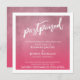Cette conception comporte une police de script manuscrite moderne utilisée pour créer un graphique représentant le mot "reporté", grand et gras. Une subtile couche d'aquarelle a été placée en haut, ajoutant de la texture et créant un dégradé, un effet d'ombre avec votre couleur arrière - plan. Pour ajouter un effet audacieux, j'ai placé une épaisse bordure blanche autour des bords de l'avant de la carte. Utilisez les champs modèles pour ajouter vos détails personnels et faire de ce design unique et moderne votre propre. L'arrière - plan peut être changé en n'importe quelle couleur. Veuillez communiquer avec toute demande spéciale ou customiser de l'aide. // 100 //