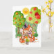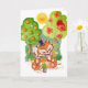 Une illustration adorable et très mignonne montrant un renard de dessin animé mâle et femelle penché les uns contre les autres les yeux fermés. Ils sont assis dans une clairière dans la forêt et sont entourés d'arbres aux fruits orange et aux fleurs d'hibiscus ainsi que d'un soleil jaune vif. La carte est idéale pour les célébrations de la Saint-Valentin ; pour les événements et les rassemblements romantiques; à titre d'invitation à une fête de fiançailles ou de carte pour un mariage ou du couple marié pour remercier les invités d'avoir assisté à leur journée de mariage. Personnalisez l'intérieur pour convenir à votre occasion spéciale.