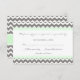 Cartes de mariage RSVP en gris fusain élégant et contemporain, vert menthe pastel et blanc motif chevron moderne zigzags. Personnalisable avec les détails de votre mariage, disponible dans de nombreux produits mariages correspondants.