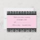Cartes de mariage RSVP en rose clair élégant, noir et blanc avec motif classique floral damassé. Personnalisable avec les détails de votre mariage, disponible dans de nombreux produits mariages correspondants.