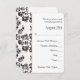 Cartes de mariages rsvp à thème français, de style parisien, avec une bordure florale damassée noire et blanche vintage, design imprimé couleur rose vif, et la tour Eiffel à l'arrière. Ajoutez les initiales de la mariée et du marié en rose. Conçu par Chrissy H. Studios, LLC. Tous droits réservés.