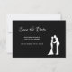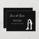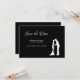 Une simple date d'enregistrement de mariage noir et blanc pour le couple moderne avec une silhouette d'une mariée et d'un marié. Personnalisez en ajoutant vos détails de mariage.