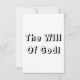 Cette carte de voeux présente un design qui comprend une police d'impression Princetown avec des lettres noires en blanc avec le verset de la Bible de la Bible du KJV "Mark 10:9" sur un arrière - plan blanc dans ce thème basé sur la foi. Ce verset fait référence au livre de Marc 10ème chapitre montrant le 9ème verset de cette Bible Écriture cite le thème de la Bible du Roi Jacques avec les mots "La Volonté de Dieu !" sur le dos. Fabriqué avec une impression couleur pleine qualité sur un papier mat de 3,5 po x 5 po (portrait) ou de 5 po x 3,5 po (paysage) fabriqué et imprimé aux États-Unis.