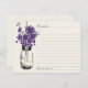 Carte de recettes parfaite pour une douche nuptiale à la campagne ou peut-être que vous aimez juste Mason Jars! Vieux Mason Jar vintage accroché à un crochet avec des fleurs sauvages de la campagne. Une merveilleuse couleur crème arrière - plan avec le dessin noir d'un bocal Mason rempli de fleurs sauvages de pays violets (2627) colorés. Si vous avez des questions sur ce design ou souhaitez un changement de couleur, envoyez-moi un courriel à paula@labellarue.com