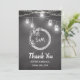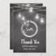 Carte de remerciements de Mariage blanc noir avec jarre Mason, lumières à cordes, couronne florale, Initiales de couple.