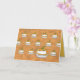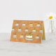 Cette carte fantaisiste présente treize citrouilles aux yeux écarquillés portant des masques et assises dans des plats à tarte. À l'intérieur, il est écrit : « De tout le patch de citrouilles, nous vous souhaitons un Thanksgiving en bonne santé et heureux. » Idéal d'une famille à une autre, ou d'un groupe de collègues, ou du personnel, au patron, ou au client.